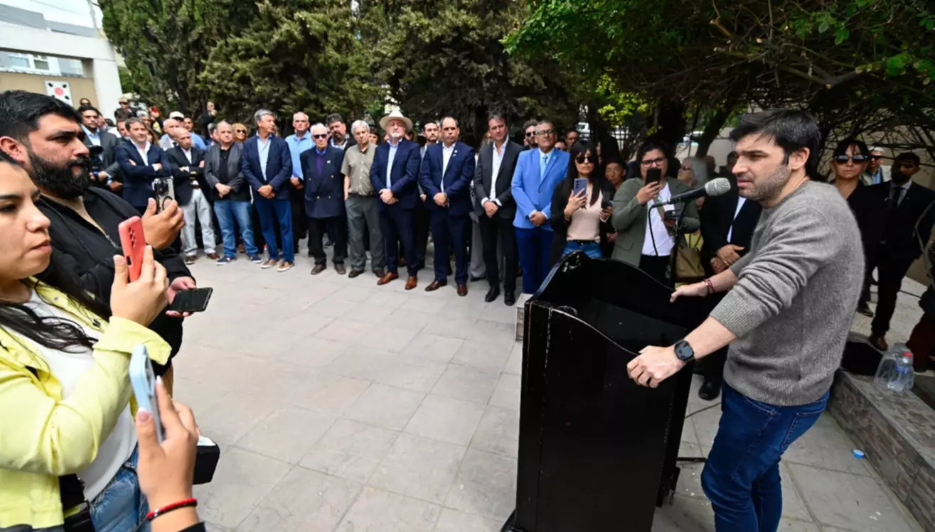 Durante el acto hablaron previamente al gobernador Torres, Ester Cordero, histórica vecina de Kilómetro 3; el presidente del Centro de Jubilados YPF, Miguel Scarulli; y el intendente de Comodoro Rivadavia, Othar Macharashvili.