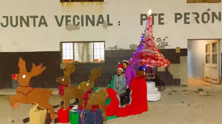 Todas las noches, de 20 a 00 horas, la sede de la Asociación Vecinal del barrio Presidente Perón de Trelew, abre sus puertas a la comunidad para fotografiarse con el arbolito navideño que se preparó para esta ocasión.