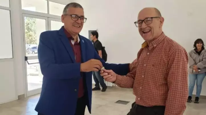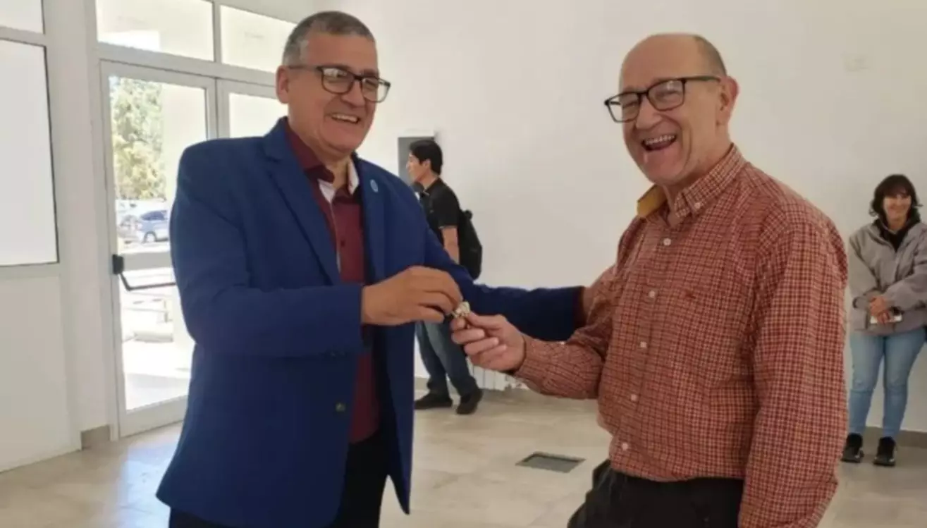 El rector de la Universidad Nacional de la Patagonia San Juan Bosco, Rubén Fleitas, junto al secretario de Planeamiento, Infraestructura y Servicios, Ricardo Riat, y al vicedecano de la Facultad de Ingeniería, Gerardo Daniel Ahrtz firmaron el acta de finalización de obra del Laboratorio de Informática. Seguidamente, el responsable político de la casa de altos estudios hizo entrega de las llaves.