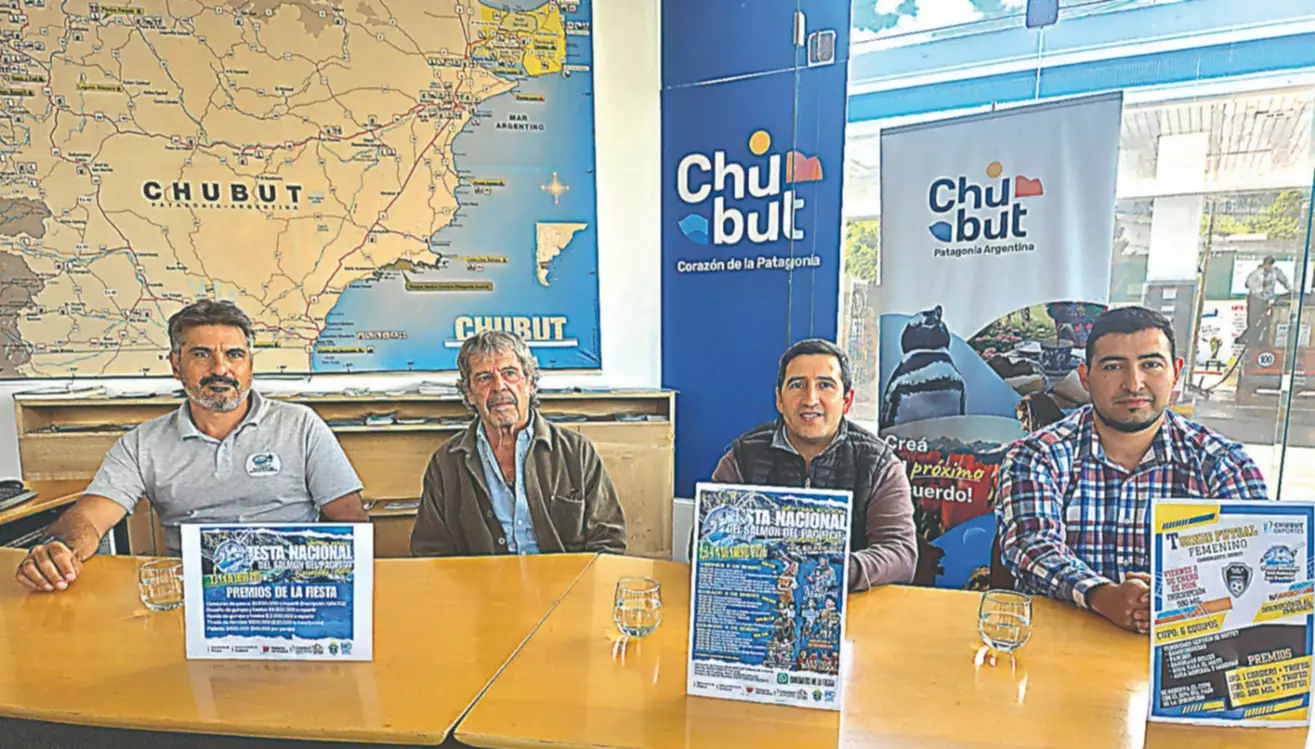 Participaron de la conferencia de prensa, realizada durante la jornada de este martes, el director de Pesca Continental del Chubut, Pablo Buono; el delegado regional de Turismo, Alejandro Byrne; el presidente de la comuna rural, Alberto Rosas, y el responsable del área de turismo en la localidad cordillerana, Edgar Carrasco.