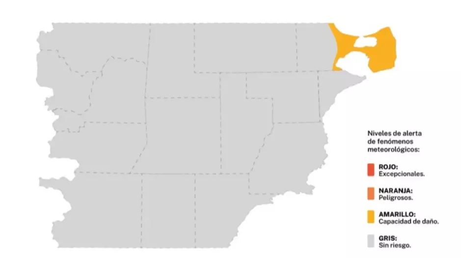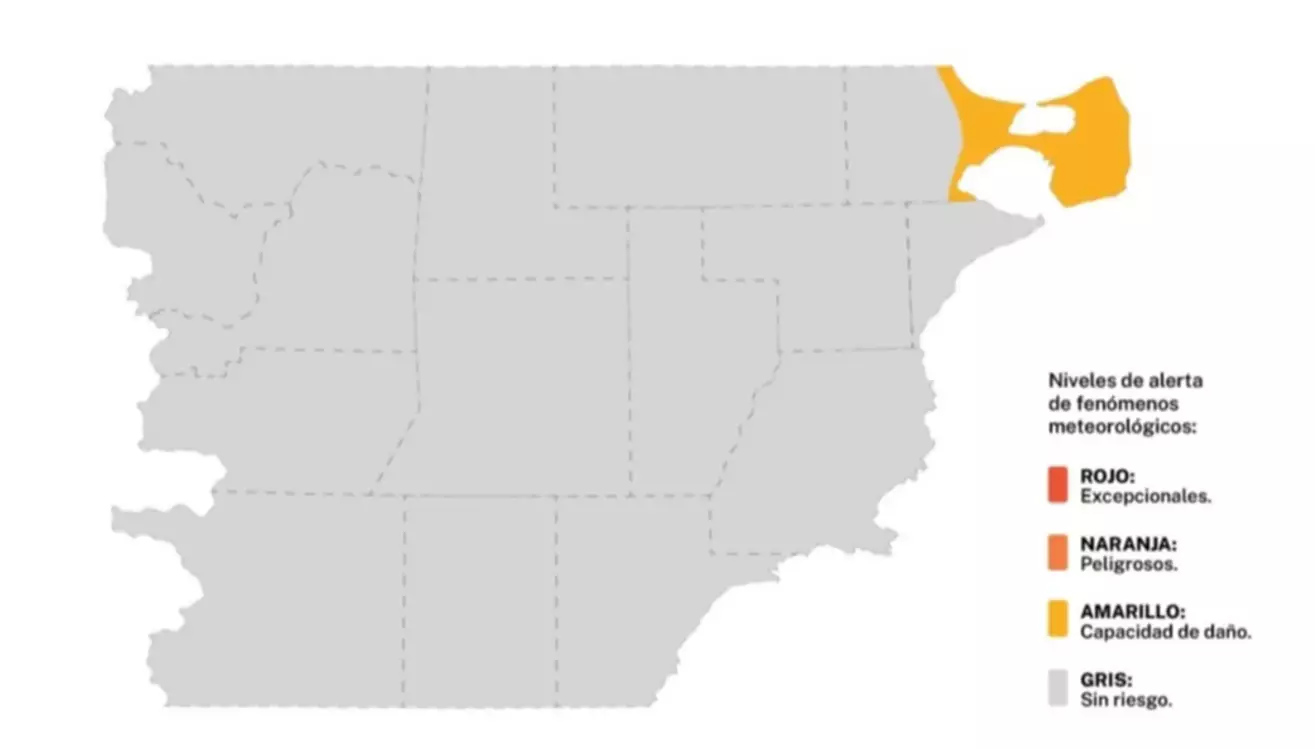Se esperan vientos fuertes del sector sudeste, con velocidades que oscilarán entre los 40 y 60 kilómetros por hora, y ráfagas que podrían superar los 90 km/h de manera puntual.