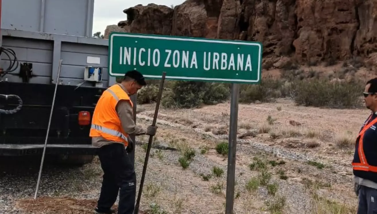Se realizaron tareas de señalización en accesos a Las Plumas por Ruta 25