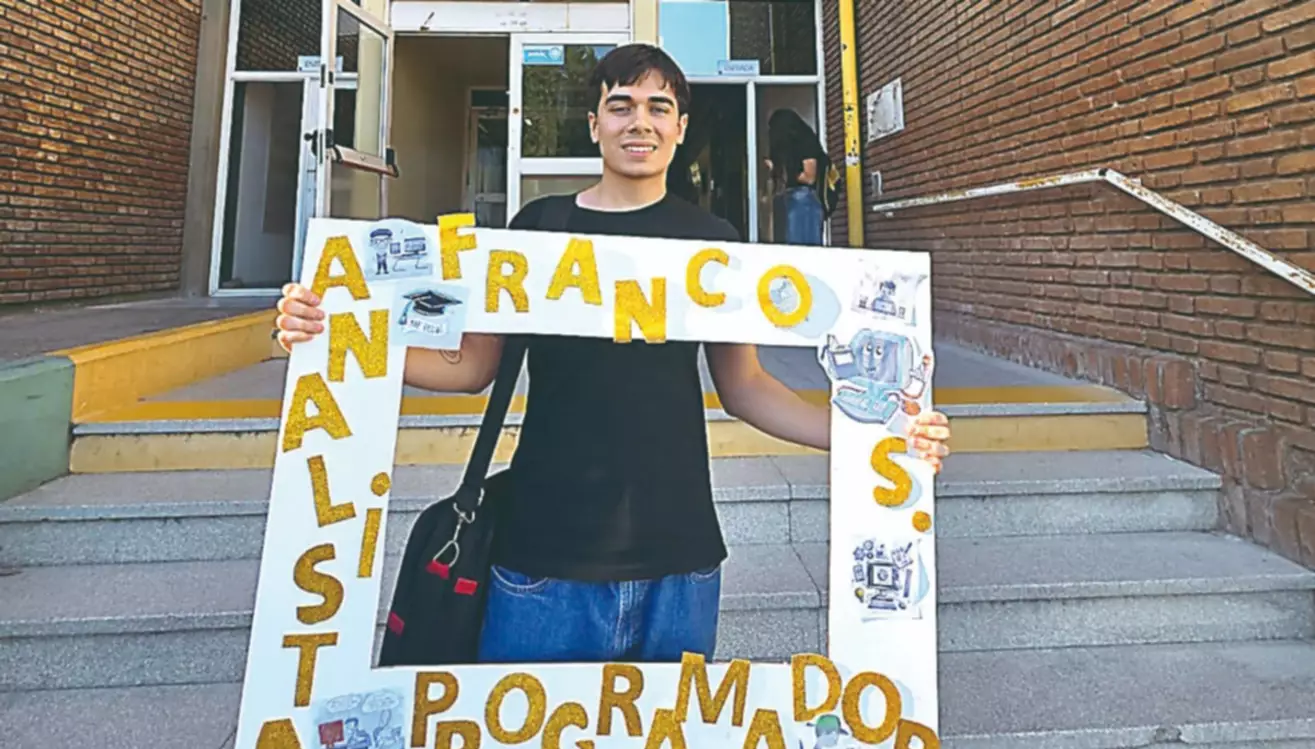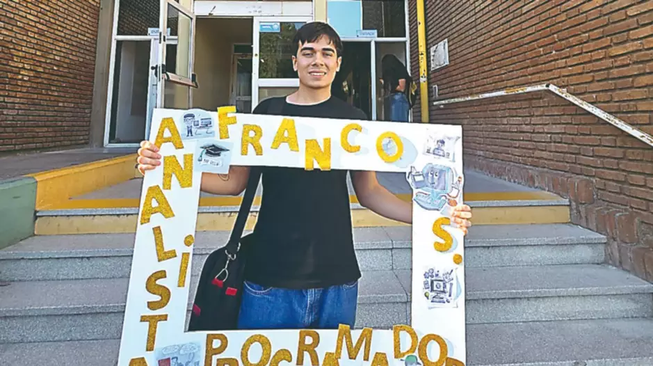 Franco Martín Soler alcanzó este viernes uno de los logros más significativos de su vida académica: rindió su última materia, Desarrollo de Software, en la Sede Trelew de la Universidad Nacional San Juan Bosco y se convirtió en Analista Programador Universitario. Franco inició su trayectoria escolar en la Escuela Primaria 199 y continuó en la Escuela Secundaria 724, donde consolidó su inclinación por la informática y la tecnología. Su mamá Dolores, su papá Walter, su hermana, abuelas y tíos siguieron de cerca este paso decisivo, haciéndole llegar mensajes de afecto, alegría y reconocimiento.