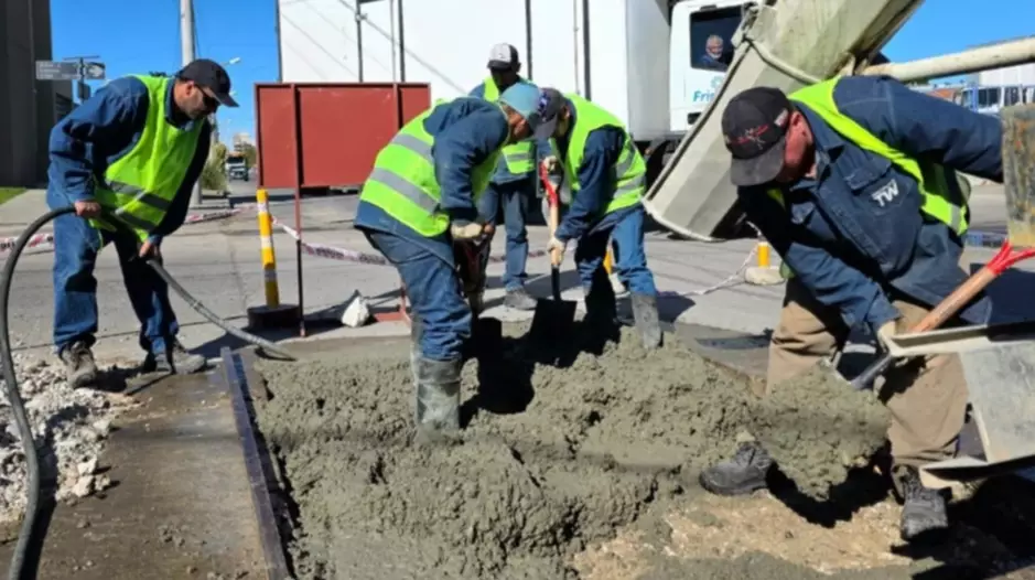 La Municipalidad de Trelew continúa con el plan de recuperación y mejoramiento de calles en distintos sectores de la ciudad. En las últimas horas se avanzó con el hormigonado en la esquina de Lezana y Cutillo, donde se reemplazó un tramo deteriorado por nuevo pavimento de hormigón.