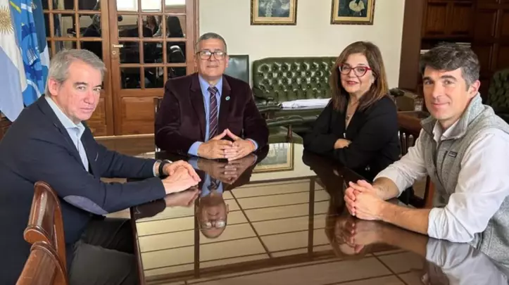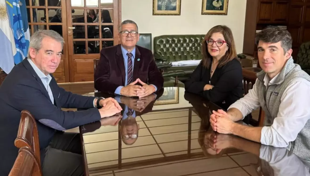 El rector de la Universidad Nacional de la Patagonia San Juan Bosco, Gustavo Fleitas y la secretaria general, Liliana Barrionuevo, mantuvieron una reunión protocolar con el gerente de Relaciones Institucionales de Pan American Energy (PAE), Horacio García, y el integrante del equipo Juan Taccari.