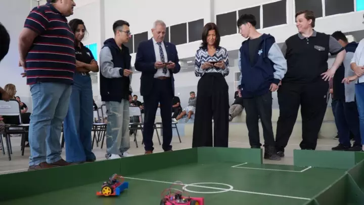 Durante la jornada, las autoridades recorrieron las instalaciones y tomaron contacto directo con los estudiantes, con especial énfasis en los espacios destinados al trabajo con tecnología y robótica. En ese marco, el ministro José Luis Punta expresó: «Quiero agradecer por el vínculo a quienes hoy nos visitan, pero también a todo el equipo docente, las familias y los chicos que hacen posible que estas cosas pasen en las escuelas de Chubut. Este es el resultado del trabajo de todos juntos, y gracias a eso hoy podemos ver lo que esta escuela ha podido hacer y hace cada día».