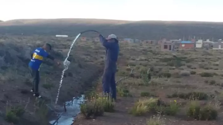La pista de atletismo y el predio deportivo asignado al cuidado del vecino Abelino Vargas ahora cuenta con agua de perforación para el riego de árboles plantados en el sector. Previamente, le habían asignado un chulengo plástico de 500 litros para trasladar agua al predio y utilizaban camionetas de la localidad para que le hagan el flete dos veces al día.
