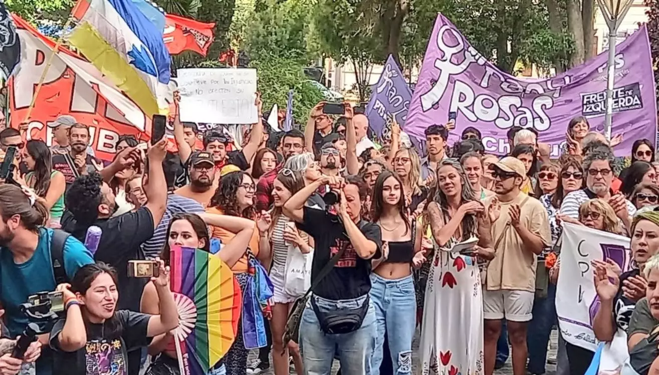 Una multitudinaria marcha recorrió ayer las calles céntricas de Trelew en la que participaron colectivos LGBT, militantes feministas, sindicatos, organizaciones sociales y agrupaciones políticas cuya finalidad consistió en rechazar el reciente discurso del presidente Javier Milei que expuso en el Foro Económico de Davos, donde el mandatario llamó a «eliminar el virus de la ideología woke» y lanzó un ofensivo comentario hacia el colectivo LGBT+, el feminismo y los migrantes.