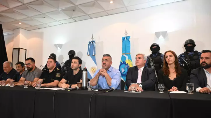 La conferencia se llevó a cabo en el Hotel Tehuelche de la localidad de Esquel, y acompañaron al titular del Ejecutivo, el ministro de Seguridad y Justicia, Héctor Iturrioz; el jefe de la Plana Mayor de la Policía del Chubut, comisario Andrés García; el procurador general Jorge Miquelarena; el procurador de Esquel, Ismael Cerda; la jefa de Fiscalía de dicha localidad, María Bottini; y los intendentes de la zona.