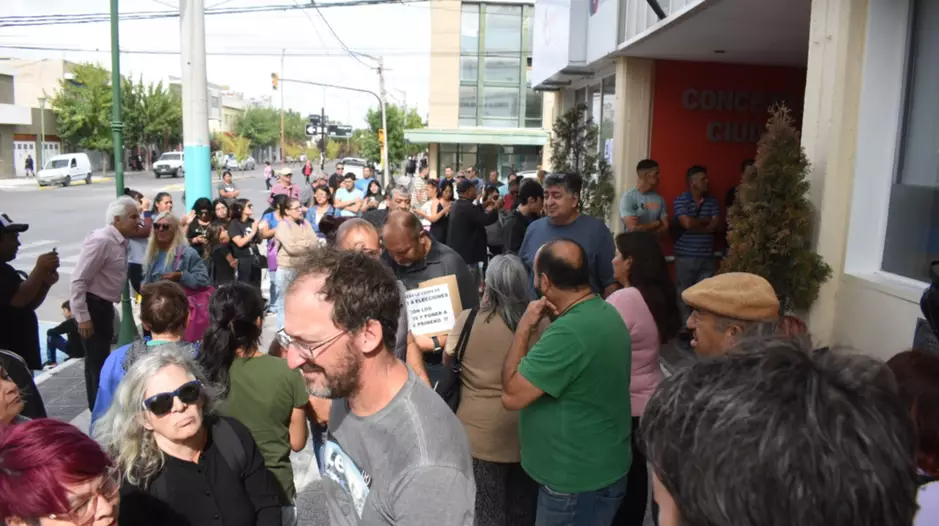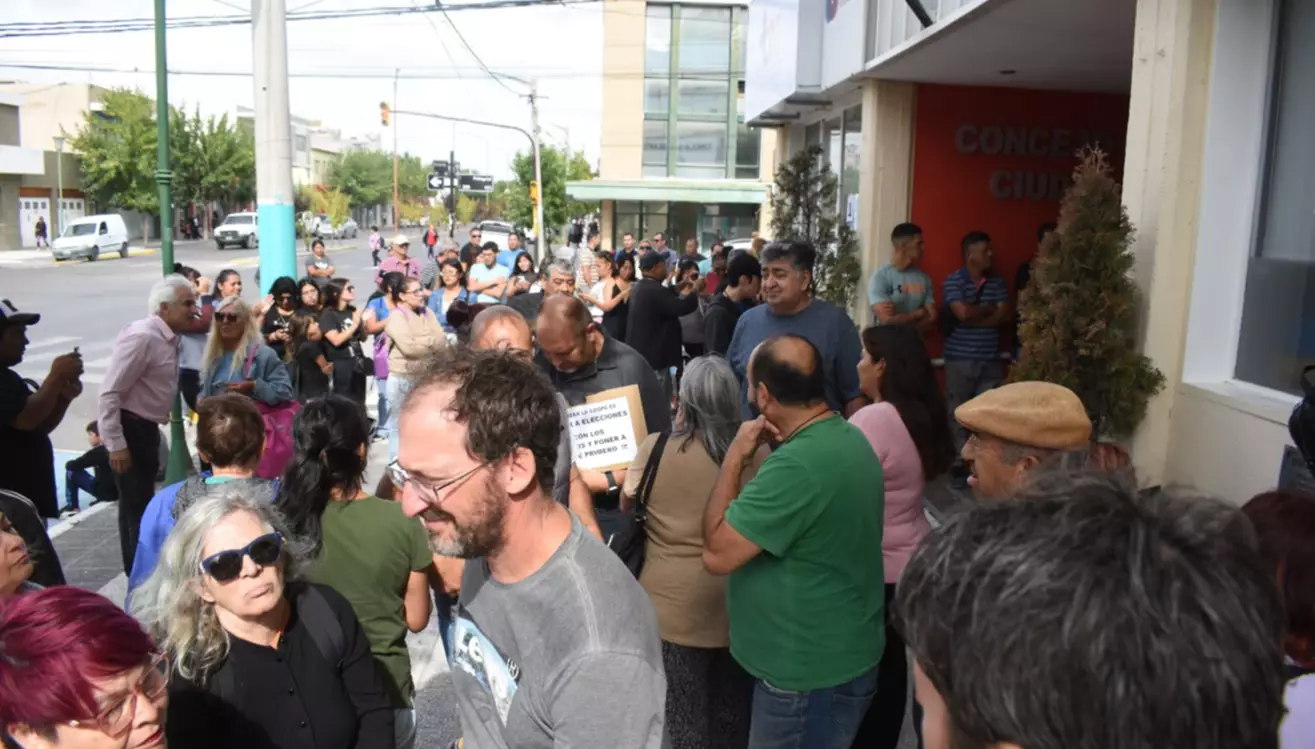 Estos últimos, junto con vecinos y militantes del PJ, tras fracasar la sesión confluyeron frente al Palacio Municipal y pidieron hablar con Merino. Entre ellos estaban el opositor de ATE, Edgardo Hompanera, la dirigente gremial Claudia Barrionuevo, la integrante del Congreso del PJ, Sandra Tribuzio, y el concejal Angel Cayupil.