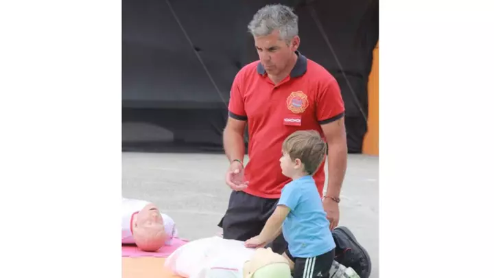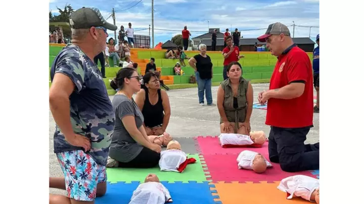 La actividad, que se desarrolló durante la tarde, incluyó talleres de Reanimación Cardiopulmonar (RCP), Primeros Auxilios y uso de Extintores, los cuales fueron abiertos al público, brindando herramientas valiosas para la seguridad y el cuidado comunitario.