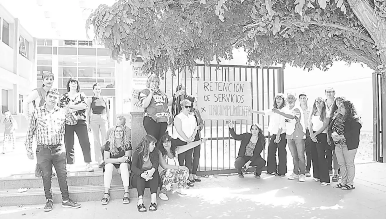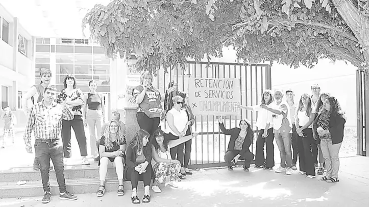 Al respecto, que se les adeuda un 15,5% y no saben en qué forma ni cuándo se lo van a pagar. Por esta razón, iniciaron un plan de lucha que la próxima semana se profundizará. En la foto, personal judicial en las puertas del edificio explican los motivos de su reclamo.