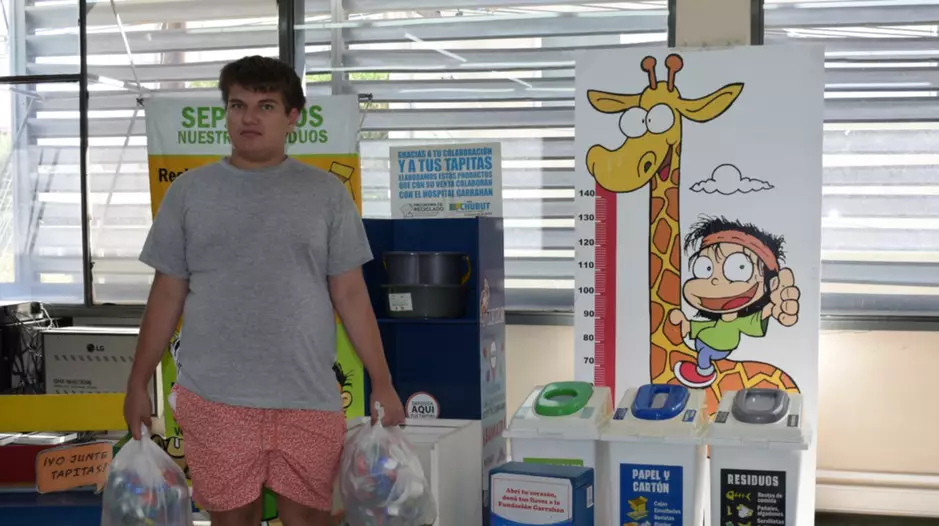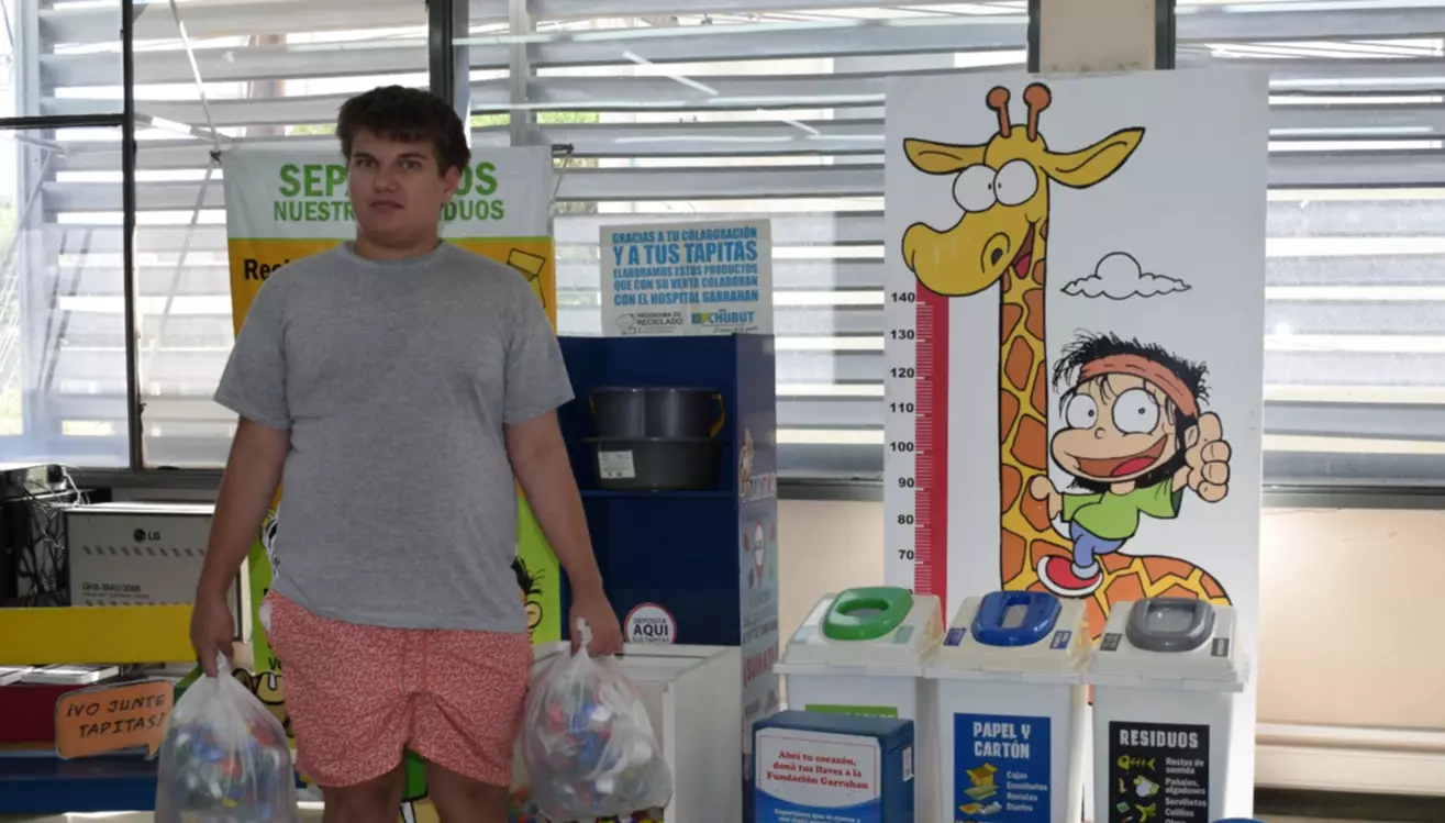 Nicolás Conti y su papá Carlos llegaron a diario EL CHUBUT con dos bolsas llenas de tapitas plásticas, para sumarse a la campaña que desde el año 2016, impulsa este medio para la Fundación Garrahan. Las tapitas se van recolectando en la sede central y en las agencias y una vez por año se hace el envío. Nico y su papá son de Playa Unión y aprovecharon un viaje a Trelew para colaborar con esta noble causa.