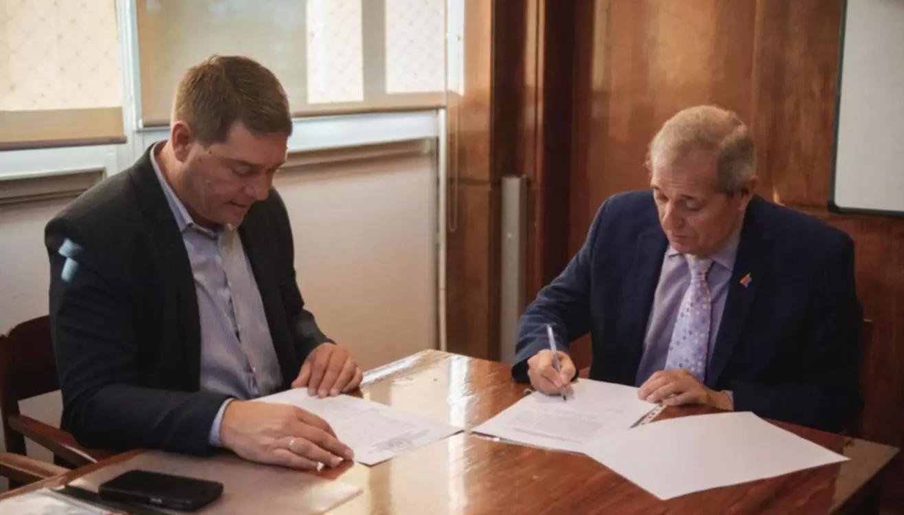 Cumpliendo con lineamientos trazados por el gobernador Ignacio "Nacho" Torres respecto al compromiso por fortalecer la educación en la ciudad de Rawson; el ministro de Educación del Chubut, José Luis Punta y el intendente Damián Biss firmaron la ampliación de un convenio, que entre otros aspectos, permitirá fortalecer la infraestructura escolar y avanzar en la creación del Polo Educativo y Tecnológico en la ciudad capital.