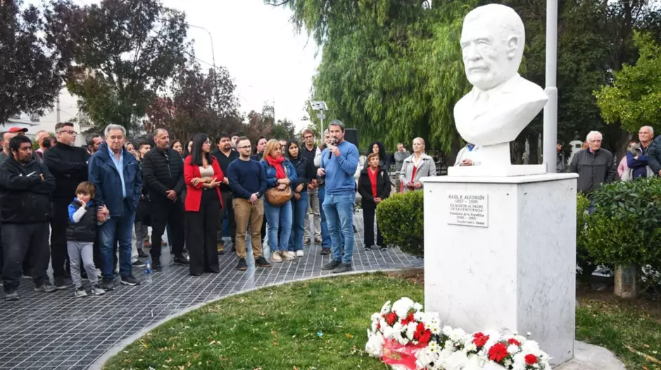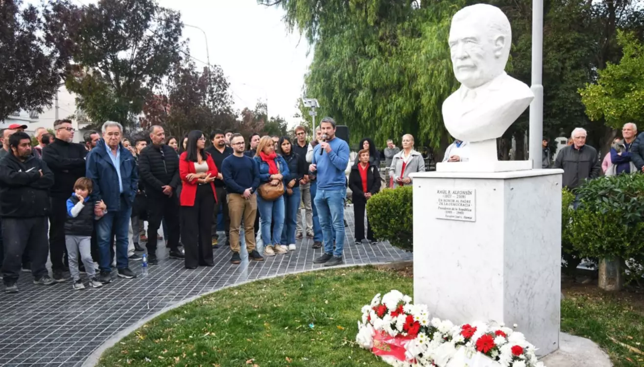 En el acto, realizado en plaza Independencia, se colocaron ofrendas florales a los pies del busto del histórico dirigente radical, que visitó la ciudad en reiteradas oportunidades. «Es un lindo momento. Reencontrarnos los radicales. En estos tiempos donde la política se bastardea tanto, no se habla de partidos políticos y se personalizan mucho las discusiones, es loable reconocer cómo recordamos a Raúl», dijo el intendente Gerardo Merino.