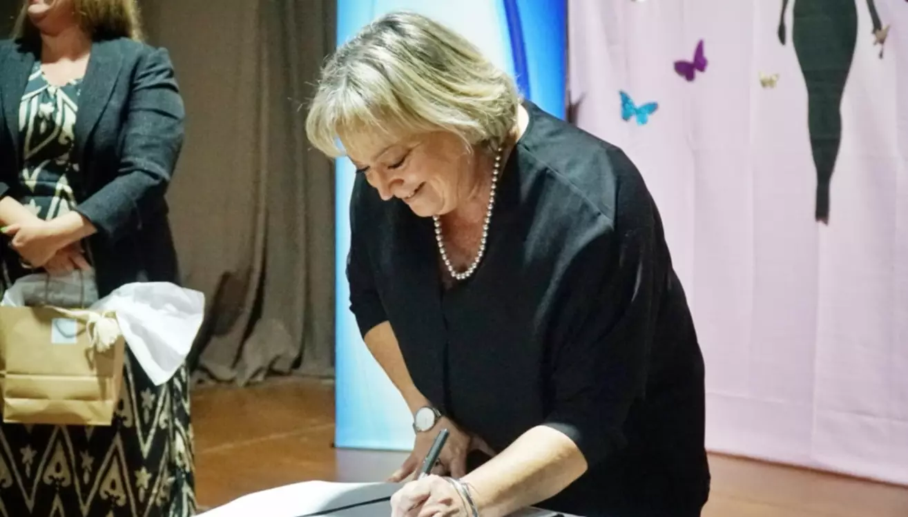 Silvia Alejandra Bustos, presidenta del Superior Tribunal de Justicia de Chubut y la ministra del alto tribunal, Camila Lucía Banfi Saavedra, participaron el sábado por la noche de la firma de un convenio marco que tiene como objetivo establecer vínculos de cooperación académica, técnica y de investigación entre las partes para que, en el ámbito de sus respectivas competencias, generen de manera conjunta actividades, proyectos, capacitaciones y sensibilizaciones, intercambio de información, realización de estudios y trabajo de interés común en materia de género.