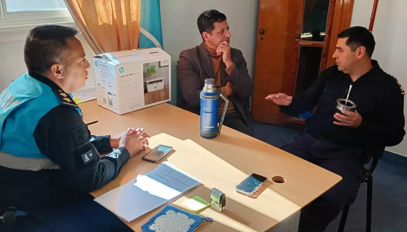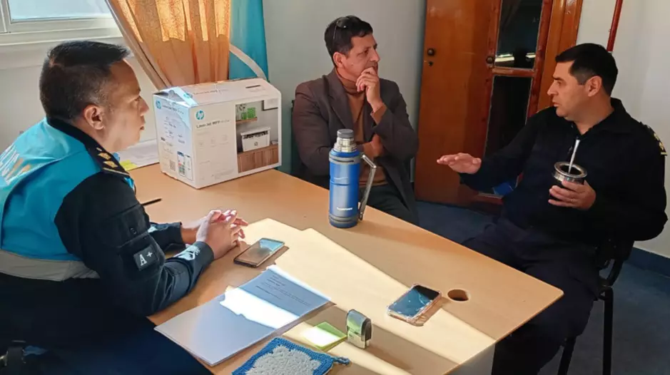 Hoy por la mañana, Horacio Quinteros pasó a saludarlo, a tomar unos mates y dejarle algunos elementos que consiguió en Rawson para la Comisaría del Pueblo del Molino. Allí, Silva, que estuvo acompañado por el Segundo Jefe, Comisario Sánchez, le contaron los proyectos que tienen en esta tarea de brindar prevención en materia de seguridad, pero también como servidores de la comunidad.