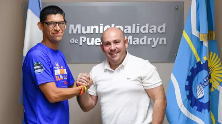 Al respecto, el Intendente dijo: “Recibimos en el Municipio al madrynense Marcos Paves, quien estará representando a nuestro país en el Mundial de Ironman que se realizará en España”.