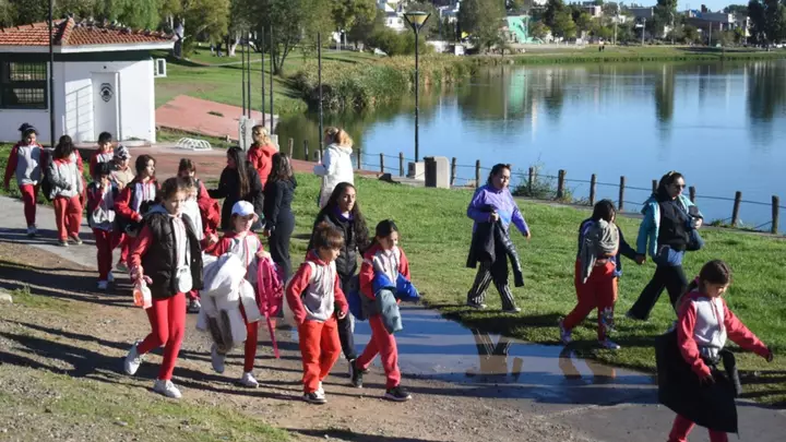 En el mes de la Actividad Física y de la Salud, estudiantes de 5to grado de nueve escuelas de Trelew, participaron de una serie de actividades físicas y de una marcha aeróbica en el predio de la Laguna Chiquichano. La propuesta, de la Coordinación de Educación Física de la Región IV del Ministerio de Educación, tuvo el acompañamiento del CEF Nro 26, y de las Coordinaciones de Deportes y Salud del Municipio de Trelew.