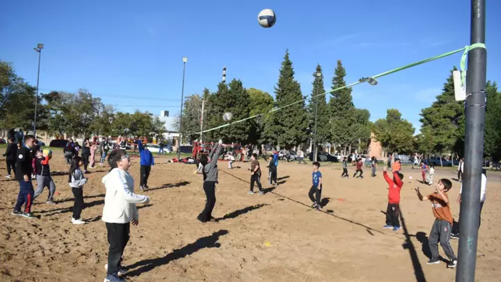Y la participación de docentes y profes de Educación Física que se encargaron de acompañar y armar las estaciones en las que niños y niñas pudieron expresarse y disfrutar. Hubo una marcha aeróbica alrededor de la Laguna, estaciones de atletismo, ajedrez, rugby, tenis (hubo acompañamiento del Trelew Tenis Club), beach vóley, beach hándbol y beach fútbol.