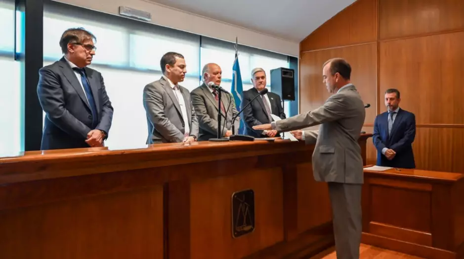 A continuación, el Dr. Diego Fernando Rodríguez prestó juramento de ley en los términos del artículo Nº 9 de la Ley V Nº 174, comprometiéndose a desempeñar fiel y lealmente el cargo para el que ha sido designado, cumpliendo y haciendo cumplir, en lo que de él dependa, las Constituciones y Leyes de la Nación y de la Provincia del Chubut. Tras sus palabras fue puesto en funciones por el Ministro del Superior Tribunal de Justicia, Dr. Andrés Giacomone.