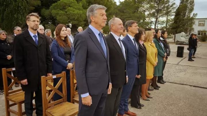 El vicegobernador Gustavo Menna estuvo presente en el acto y destacó la importancia de conmemorar esta fecha clave para la historia argentina. Agradeció especialmente al capitán de Navío Gabriel D’Alessandro, jefe de la Fuerza Aeronaval Nro 3, por la invitación a participar del evento. También estuvieron presentes el jefe de la Base Almirante Zar, capitán de Fragata Maximiliano Fenley; el intendente de Puerto Pirámides, Jorge Perversi; el diputado provincial Fabián Gandón; funcionarios de los municipios de Trelew y Rawson, concejales y representantes de distintas fuerzas de seguridad.