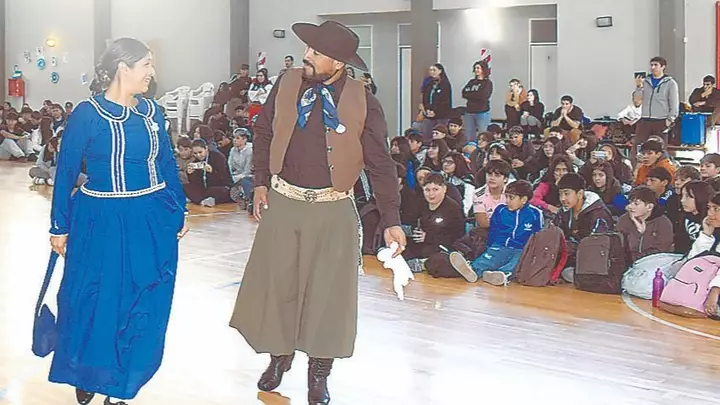 Un buen momento para disfrutar de zambas, chacareras, gatos y pericón, jóvenes que se sumaron al baile comunitario entre alumnos y docentes.