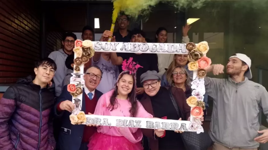 Belén Díaz Barra, de 23 años, celebró su reciente título de abogada en la tradicional foto de egreso en EL CHUBUT.