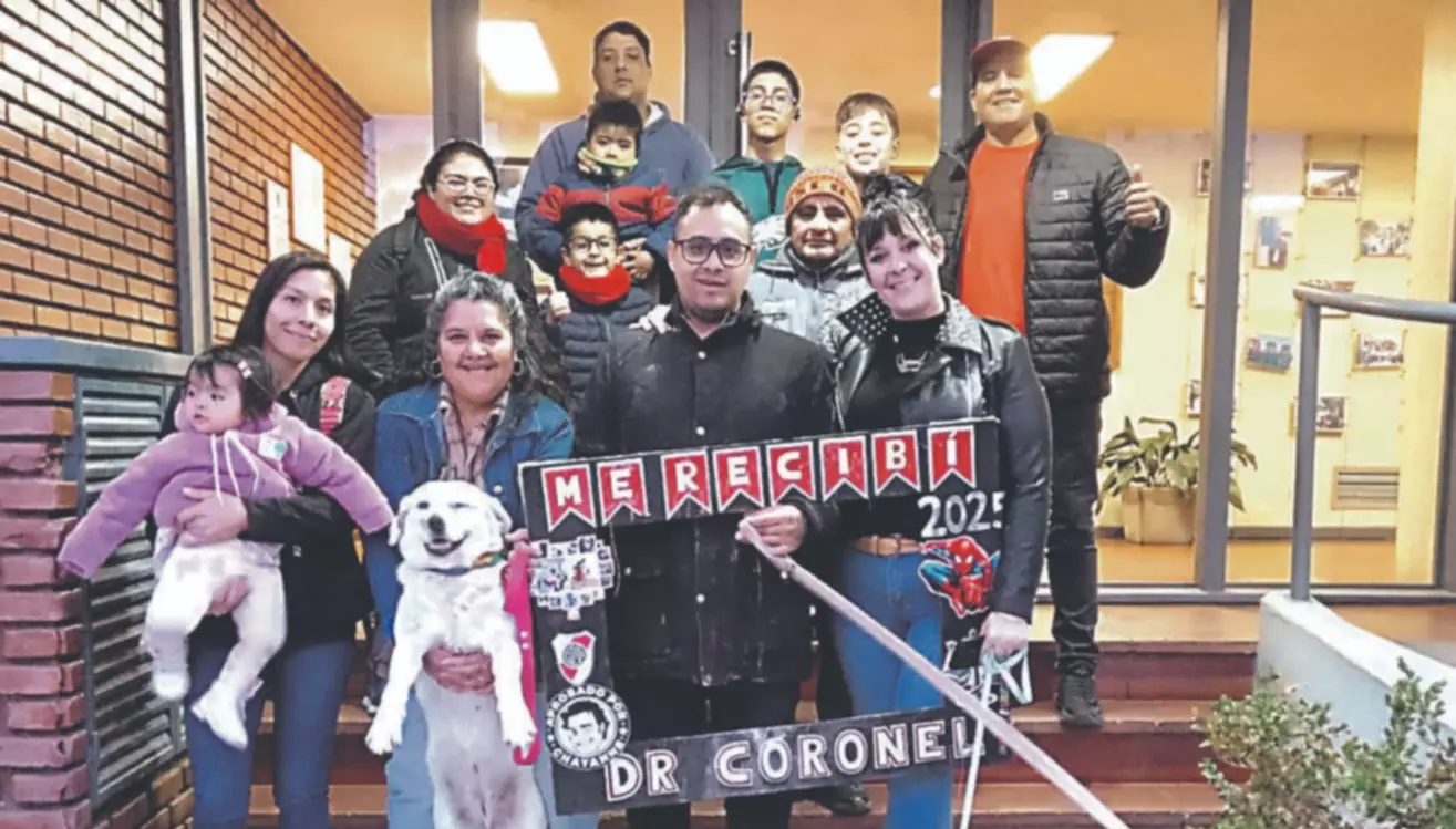 Sus estudios primarios los cursó en la Escuela 21, parte de la secundaria en la Escuela 714, ambos colegios de la ciudad de Trelew, y culminó en la Escuela 7711 de la localidad de Gastre. Acompañado por su madre Marta Sánchez, su pareja Daiana, sus hermanos, tíos y sobrinos, vinieron a cumplir con el ritual del festejo en las puertas de EL CHUBUT, donde recibió las felicitaciones por este logro personal.