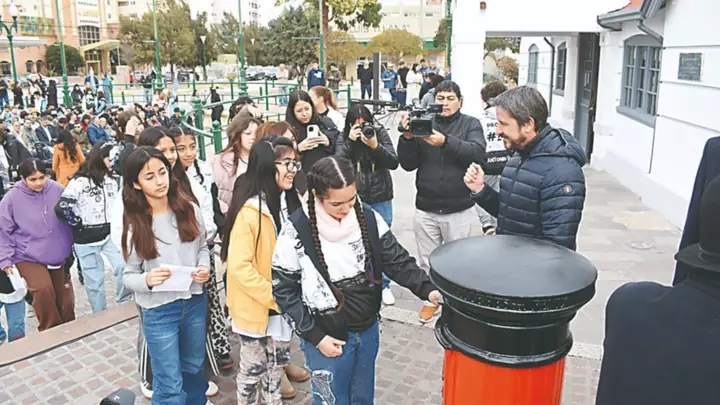 El intendente Gerardo Merino acompañó la ceremonia de instalación de una cápsula del tiempo en el Museo Pueblo de Luis, que reunió cartas escritas por alumnos de escuelas primarias, en el marco del Mes del Desembarco, programa impulsado por la Asociación San David con apoyo de los municipios de Trelew y Rawson.