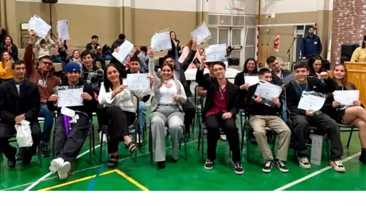Durante la ceremonia, más de cuarenta estudiantes recibieron sus certificados de finalización del nivel secundario, junto con medallas y reconocimientos como Promotores de Salud Sociocomunitaria y Mediadores de Patrimonio Cultural, en el marco de una propuesta educativa acompañada por la Universidad Nacional de la Patagonia San Juan Bosco (UNPSJB), a través de la Facultad de Humanidades y Ciencias Sociales (sede Trelew).