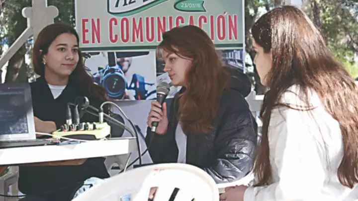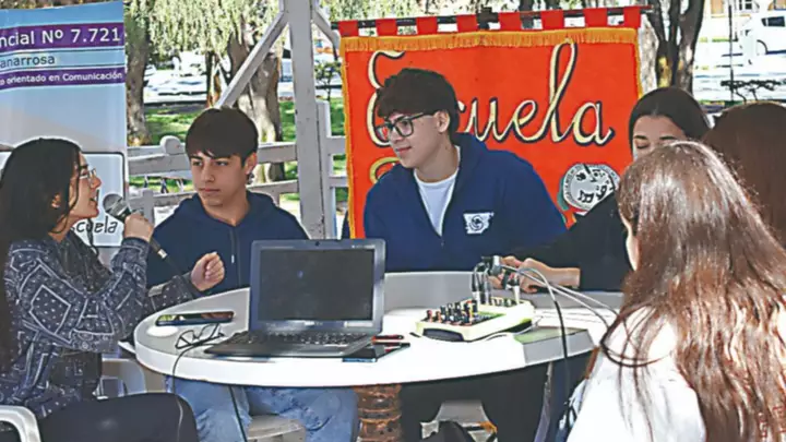 Estudiantes de escuelas con orientación en Comunicación Social participaron ayer, en la plaza Independencia, de una serie de actividades enmarcadas en el Día Nacional de la Radio, que incluyó una Radio Abierta. Las mismas contaron con las presentaciones de los alumnos de las escuelas 7721, 712 y 759.