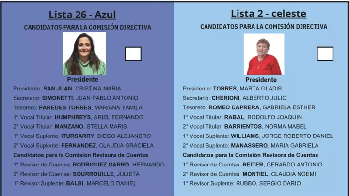 Por último, en Villa Italia dos mujeres pugnarán por la presidencia. La lista Azul 26 propone como candidata a Cristina San Juan; y la nómina Celeste 2 postula a Marta Torres.