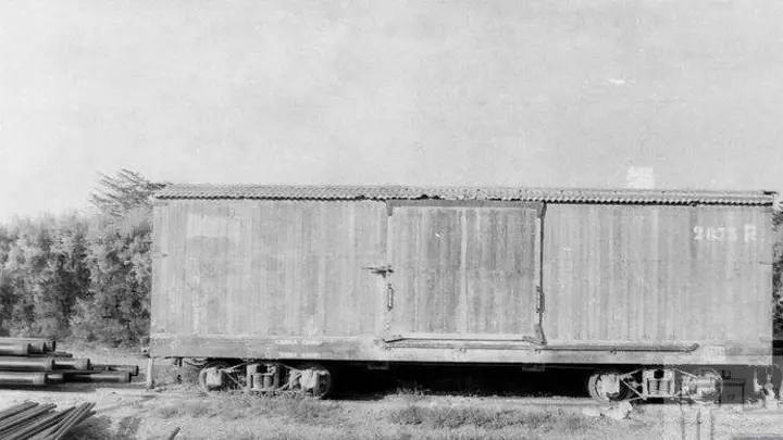 Fotografías del material rodante tomadas en 1965 en Trelew y Rawson, unos años después del cierre del ferrocarril.