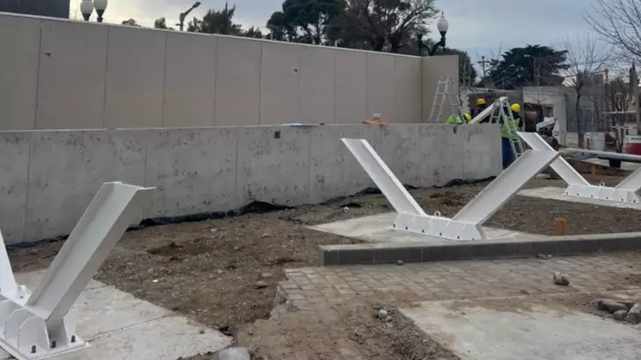 Actualmente, se trabaja en el armado de estructura general integrada y panelería de cerramiento externo y, en paralelo, se realizan tareas de conexión de servicios.