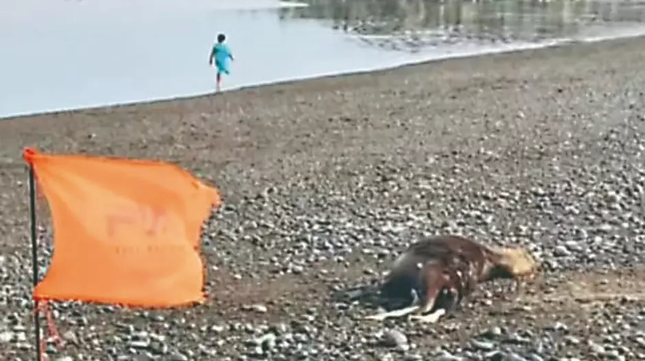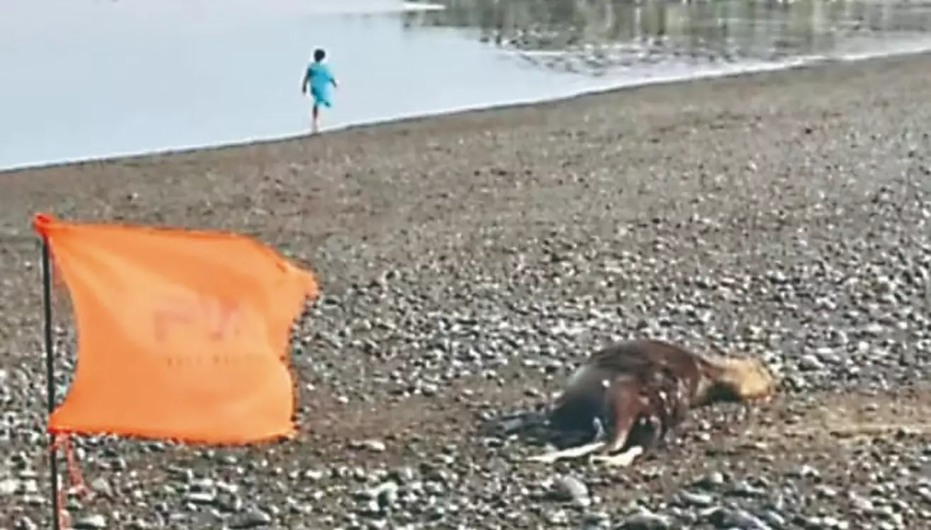 Operativo para retirar un lobo marino que fue hallado sin vida en Playa Unión