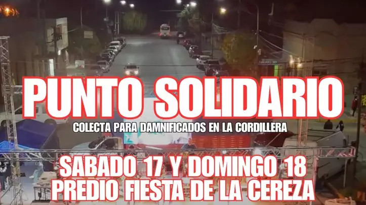 La Municipalidad de Gaiman informa que este sábado 17 y domingo 18 de enero, en el marco de una nueva edición de la Fiesta de la Cereza, se dispondrá un Punto Solidario destinado a la recepción de donaciones para personas damnificadas en la cordillera.