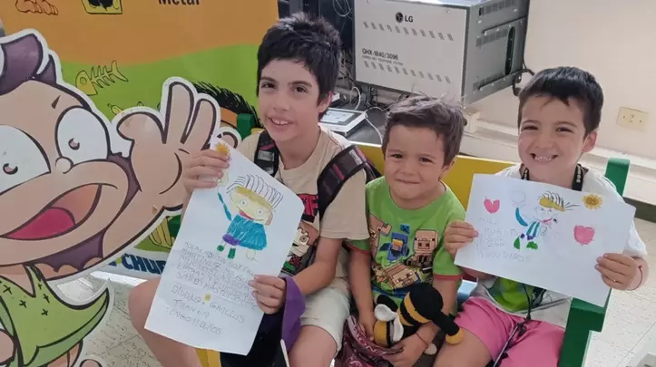 Los hermanitos Francisco (11), Gaspar (6) y Lautaro (3) Martínez, de Trelew, visitaron nuestra redacción para acercarnos hermosos dibujos dedicados a Chubutín, todos muy bien coloreados y llenos de creatividad. Durante su paso por Diario EL CHUBUT, los chicos también contaron que disfrutan mucho de los juegos del suplemento, especialmente las sopas de letras y otras propuestas.