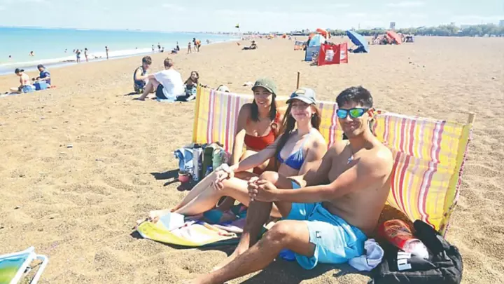 Con sombrillas de colores, reposeras y reparos contra el viento, la postal fue la de una playa repleta y animada. Muchos eligieron instalarse sobre la arena para compartir mates, charlas y risas, mientras otros se volcaron al agua para refrescarse y disfrutar de un mar calmo, ideal para grandes y chicos.