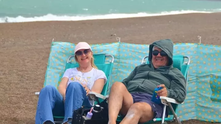 Durante gran parte del día, la playa se presentó tranquila, con el mar calmo que acompañó la escena. En la arena, no faltaron las reposeras, las mantas extendidas y las rondas de mates que se repitieron a lo largo de la costa, en un ambiente distendido y de descanso.