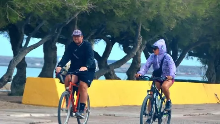 Entre las postales más repetidas, se destacó la presencia de jóvenes que eligieron pasar la tarde a la orilla del agua, compartiendo charlas y risas, mientras otros optaron por actividades al aire libre. Las bicis volvieron a decir presente en el paseo costero, con vecinos recorriendo la zona arbolada que bordea la playa, aprovechando la temperatura templada y el paisaje marítimo.