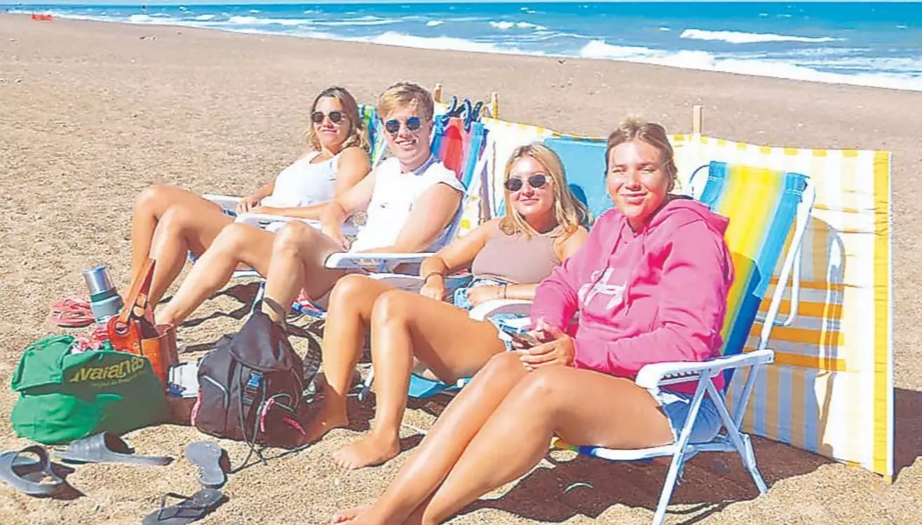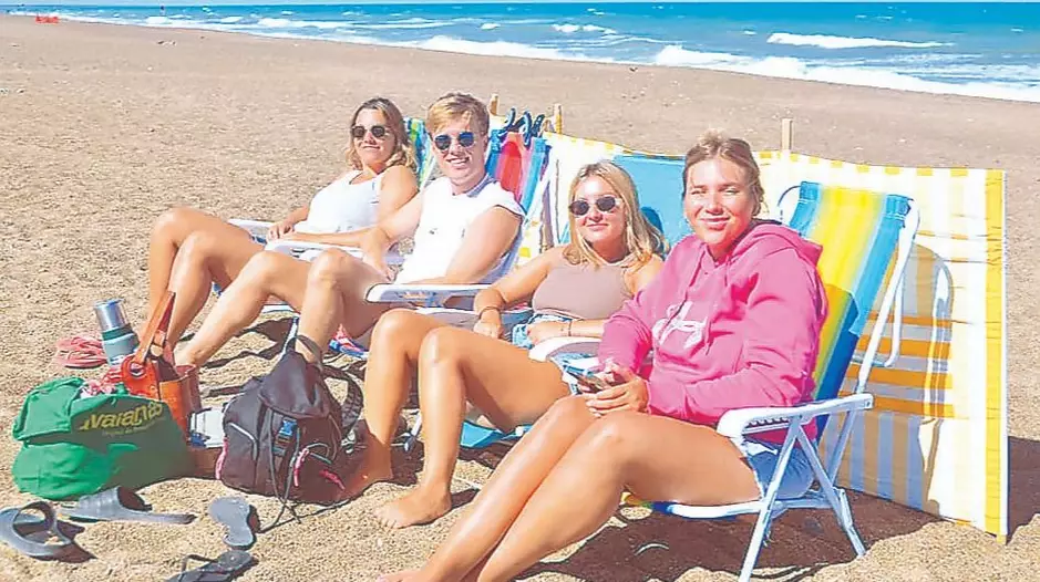 El viento no fue un impedimento para quienes decidieron instalarse en la playa, con reposeras, mantas y termos, buscando reparo y aprovechando cada momento frente al mar. Otros optaron por caminar por la primera fila, recorriendo la costa y compartiendo charlas mientras observaban el movimiento típico del lugar.