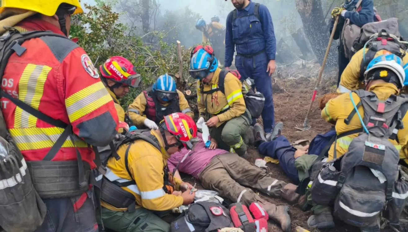 En el marco de las tareas de contención de los incendios forestales que afectan a la provincia, brigadistas cordobeses protagonizaron el rescate y evacuación de dos personas heridas en una zona comprometida por el avance del fuego.