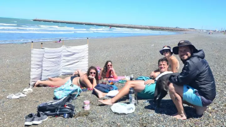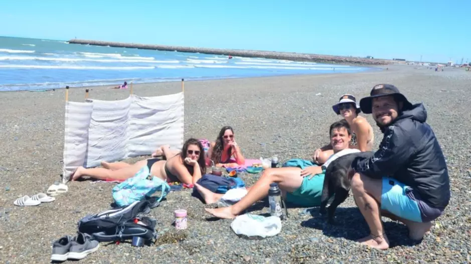 El sol acompañó durante toda la jornada y el sonido constante de las olas marcó el ritmo de un día ideal para desenchufar. Entre charlas animadas, celulares que capturaron el momento y alguna mascota que también se ganó su lugar protagónico, la postal fue la de un clásico encuentro costero: distendido, sencillo y bien patagónico.