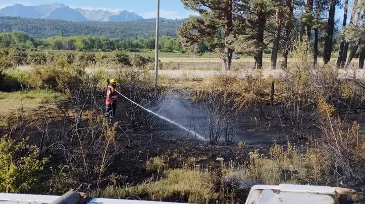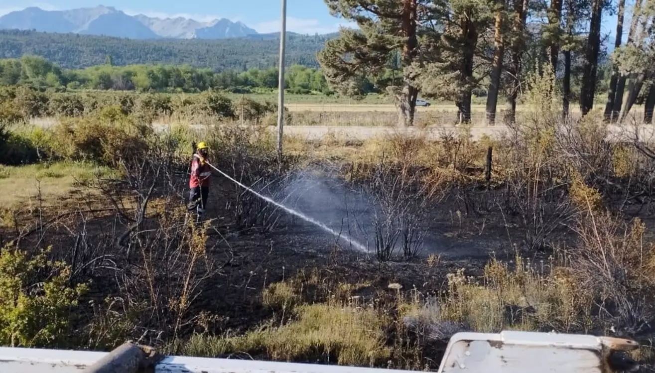 En este contexto, indicaron que el foco de incendio de pastizales se inició a aproximadamente cien metros de la finalización de la cinta asfáltica. De forma inmediata, llegó al lugar el personal de Bomberos Voluntarios de Cholila.