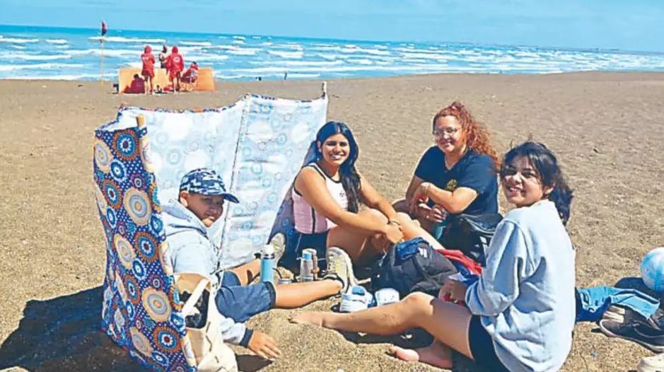 A pesar de una jornada con temperatura templada y viento característico de la costa chubutense, Playa Unión volvió a mostrar movimiento y presencia de familias y grupos de amigos que eligieron pasar el día junto al mar, reafirmando que la temporada de verano continúa activa en la villa balnearia.