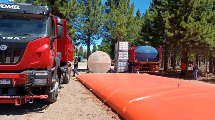 El organismo vial aportó dos camiones cisterna con capacidad de 12 y 15 mil litros de agua cada uno. Los mismos son utilizados para abastecer un reservorio mayor de 125 mil litros de agua y otro tanque de reserva de 20 mil litros, ubicados en el aeropuerto de Esquel. Desde allí, se proveerá de agua a los aviones hidrantes que operan en la zona.