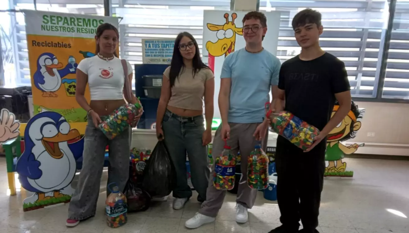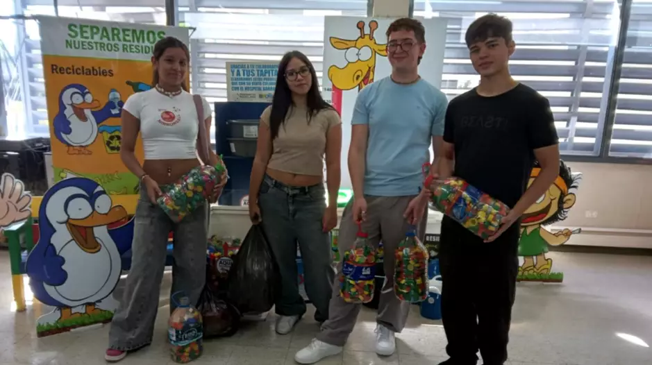 Un grupo de exalumnos de 6º año del Colegio 751 «Dr. Luis Federico Leloir», ex Comercial 1 de Trelew, que el año pasado cumplieron con el proyecto solidario que la currícula le presentó como parte del programa para su formación educativa, siguió juntando tapitas para ayudar el Garrahan.