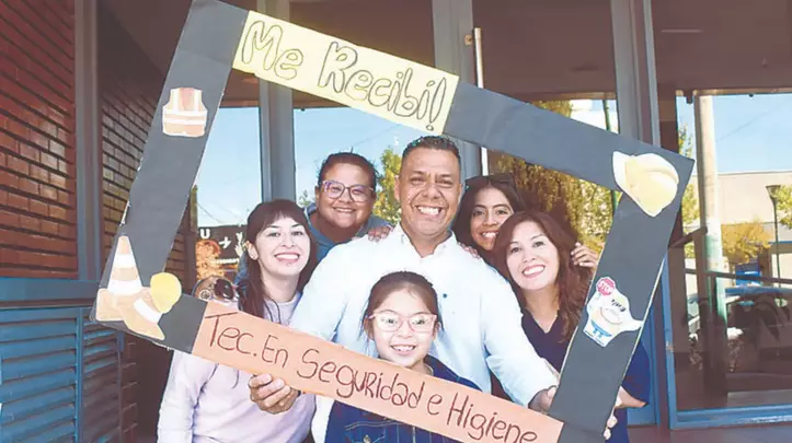 Pablo Leonardo Ojeda festejó un nuevo logro en su vida como es la obtención de un título terciario, se recibió de Técnico en Seguridad e Higiene en la sede de la Universidad Tecnológica Nacional. Realizó sus estudios secundarios en la ex-Enet de Trelew. Para anunciar esta alegría, llegó a EL CHUBUT acompañado por su familia y posó en la puerta de este medio.