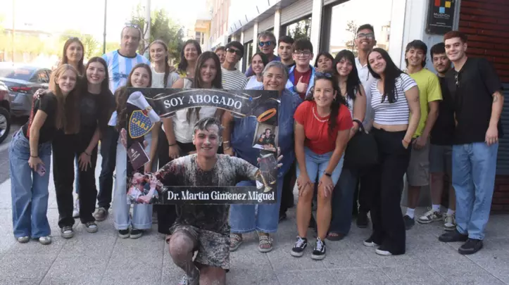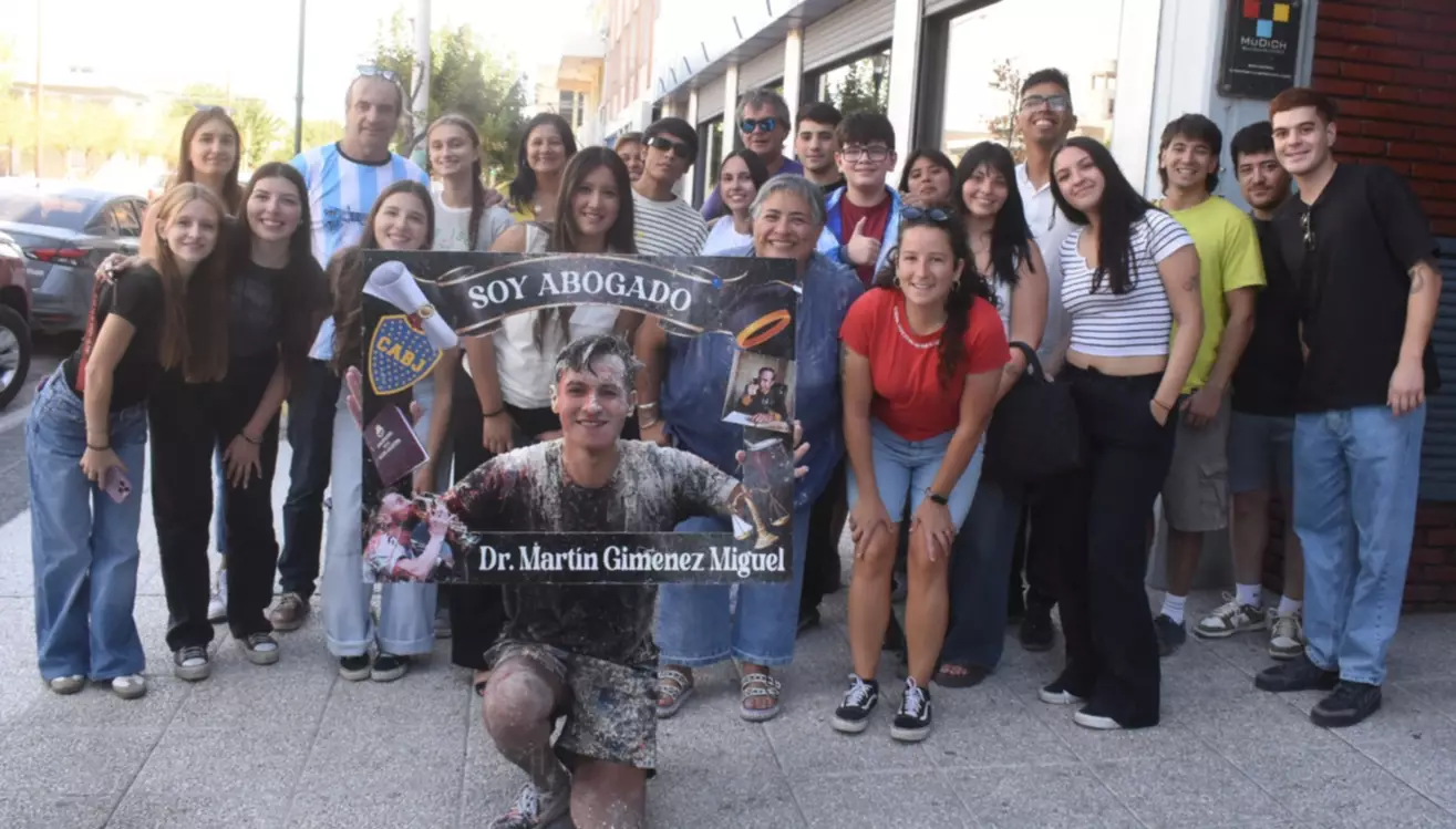 A la derecha, tenemos a Alan Emanuel Jones, quien junto a familiares, amigos y compañeros de estudio, vino a cumplir con el festejo en las puertas de nuestro diario. A la izquierda, Martín Giménez Miguel, oriundo de la pintoresca localidad de Gaiman, vino a festejar junto a su novia Merys, sus padres Mariela y José y su hermano Gabriel, además amigos, familia y compañeros de estudio.